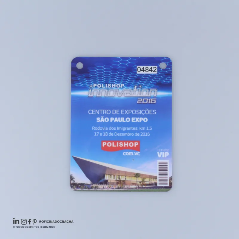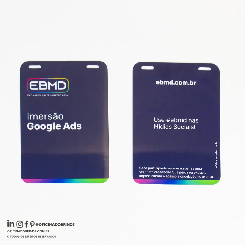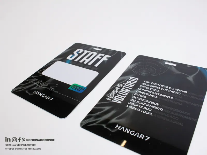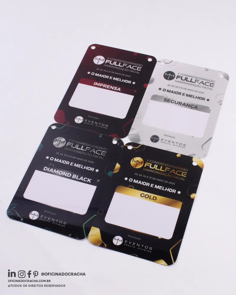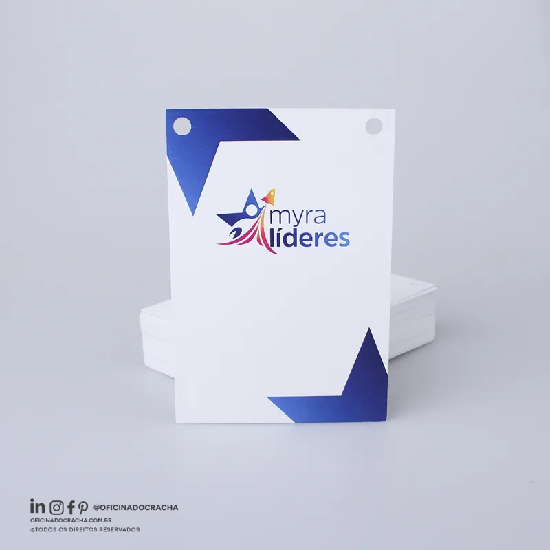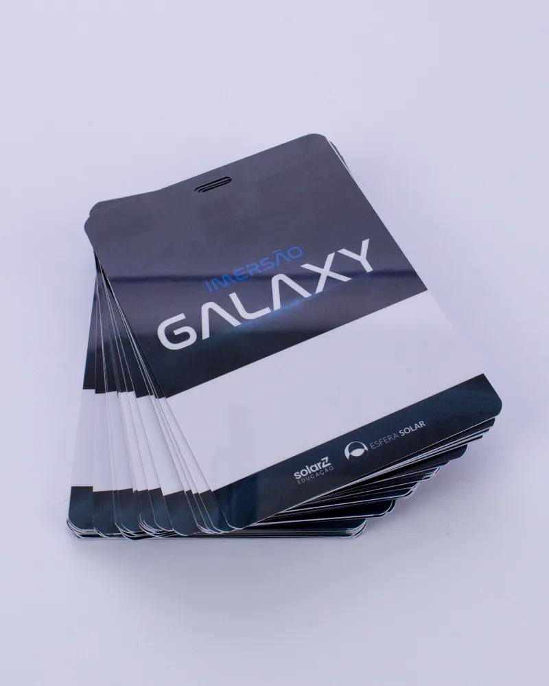 Produzidas em papel PVC ou Papel Couche,e em diferentes medidas e espessuras. Ideais para feiras, congressos, simpósios e eventos corporativos, oferecendo identificação clara e profissional.