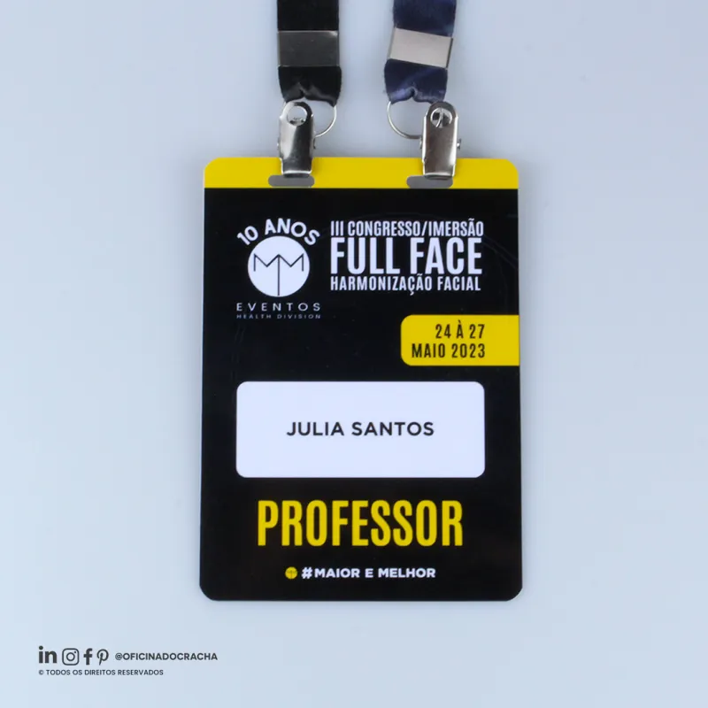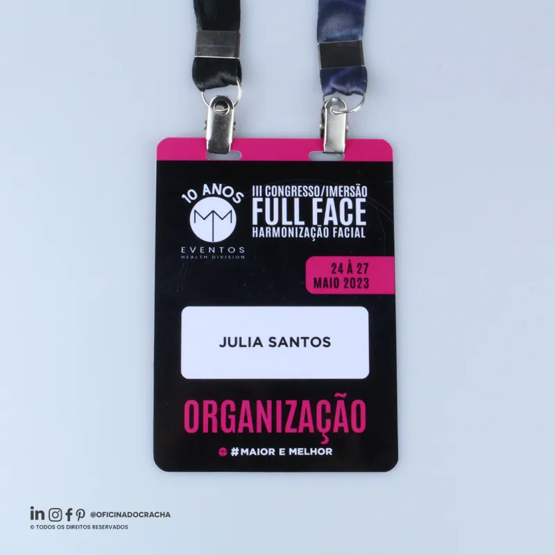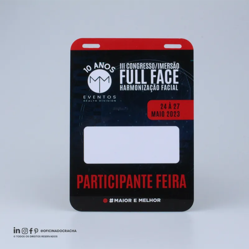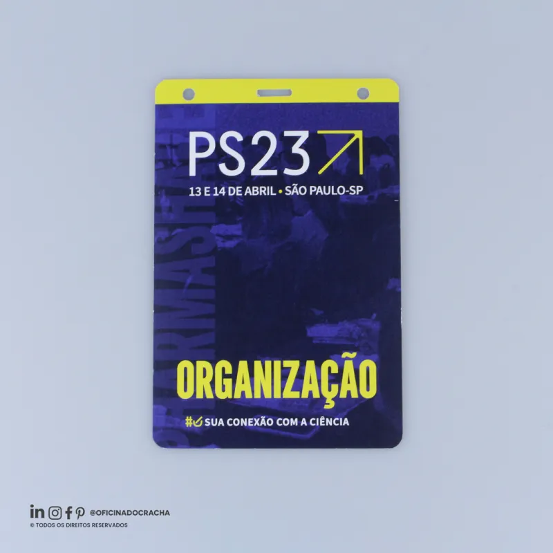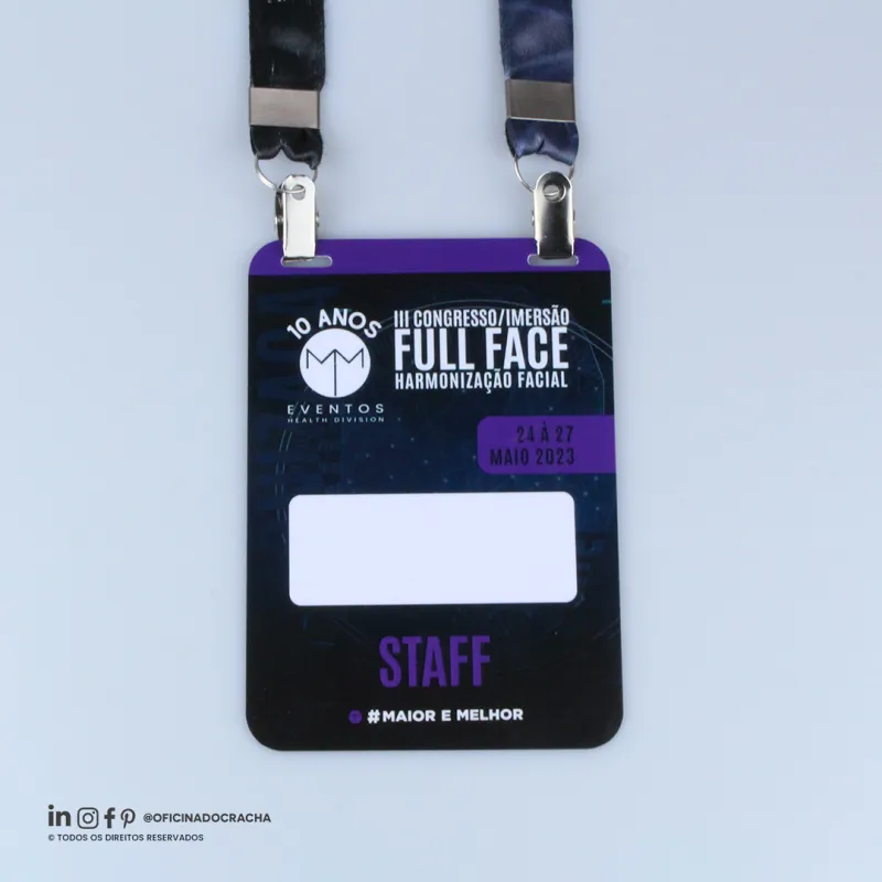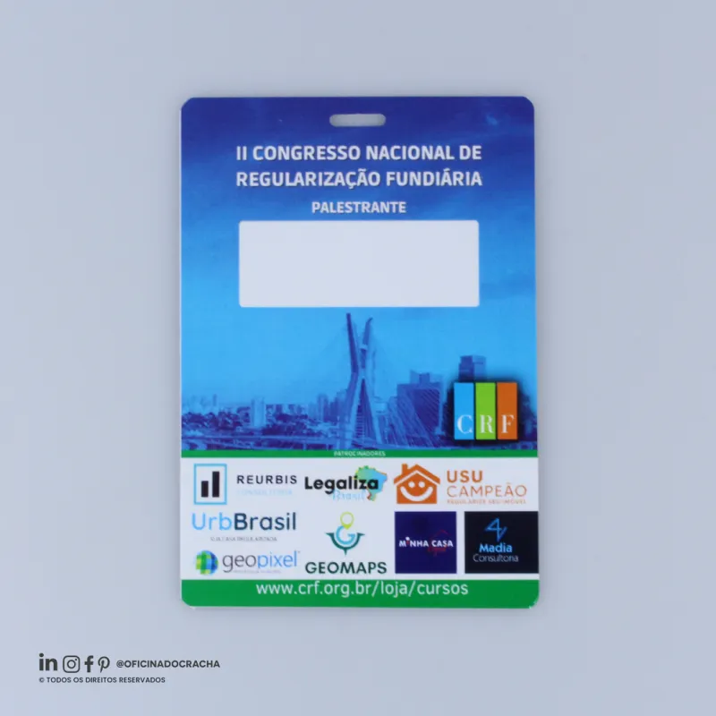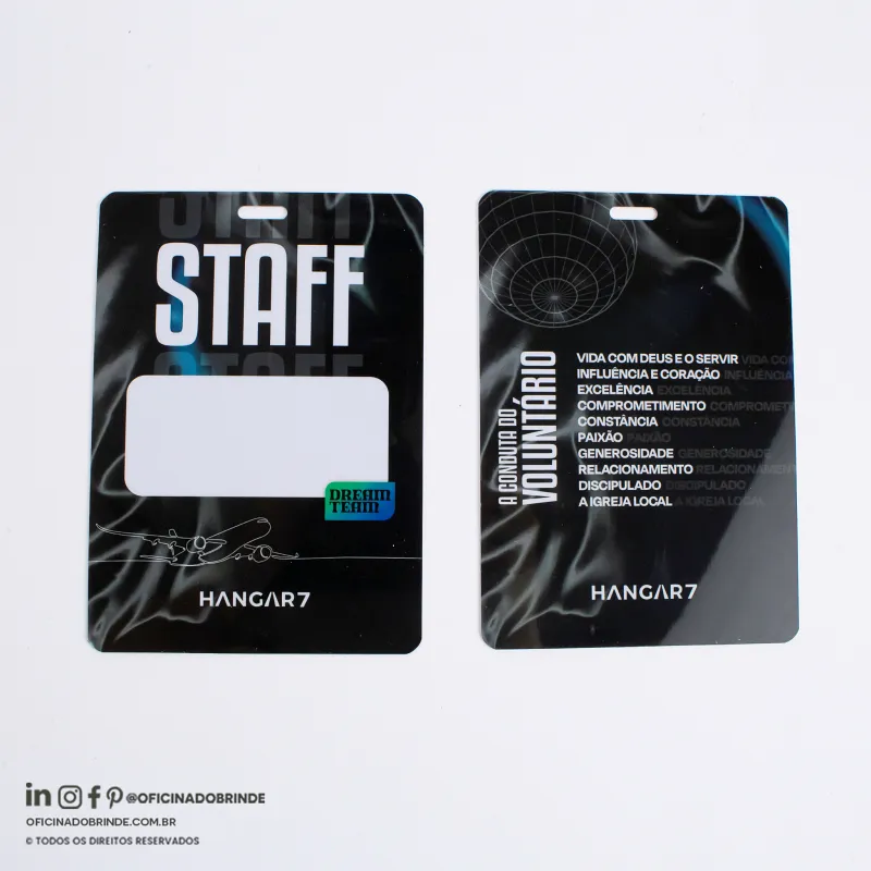 Produzidas em papel PVC ou Papel Couche,e em diferentes medidas e espessuras. Ideais para feiras, congressos, simpósios e eventos corporativos, oferecendo identificação clara e profissional.