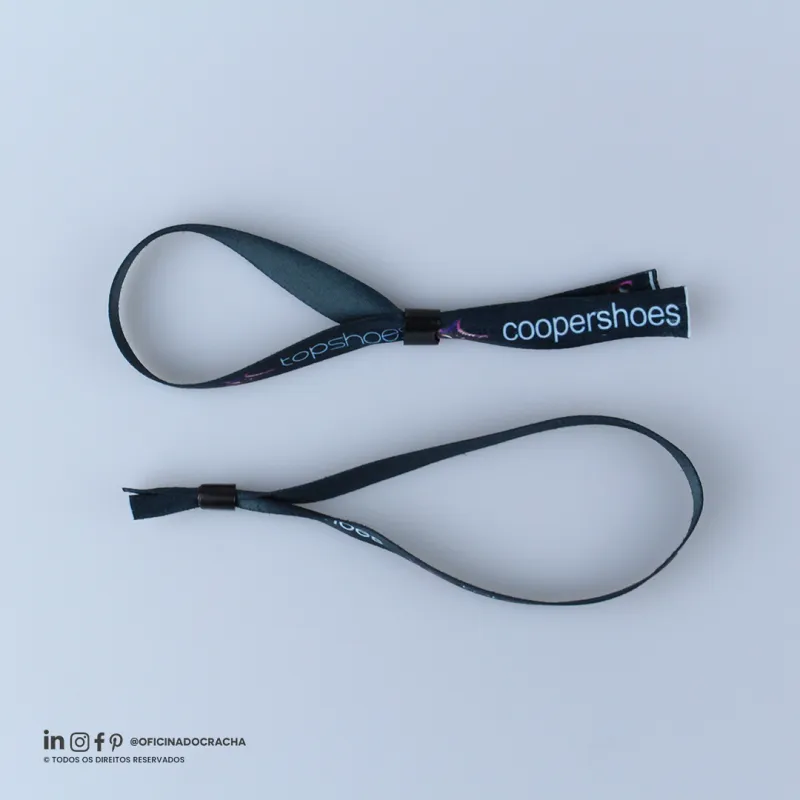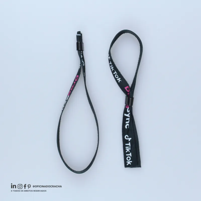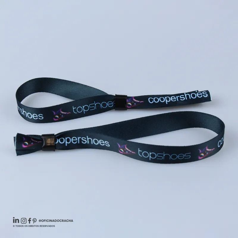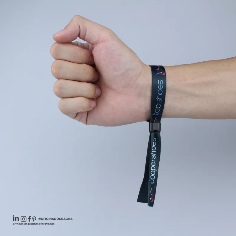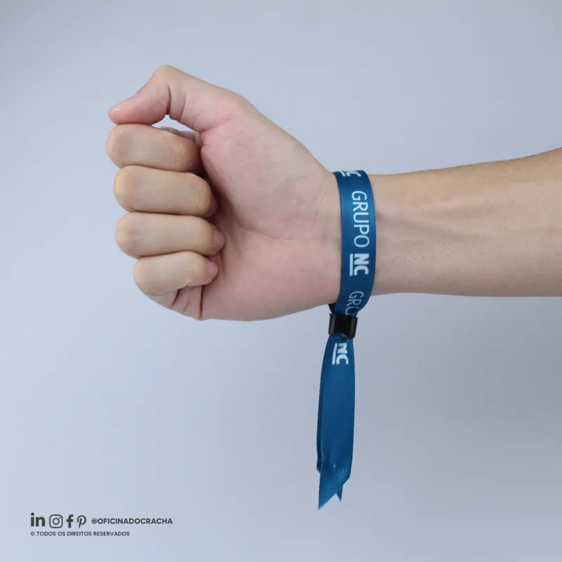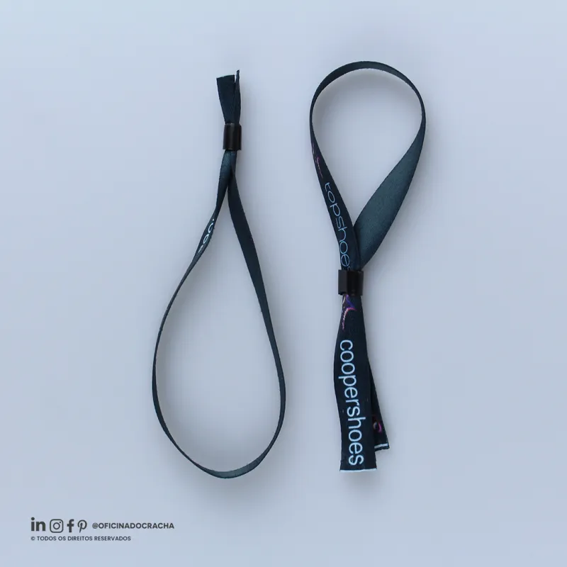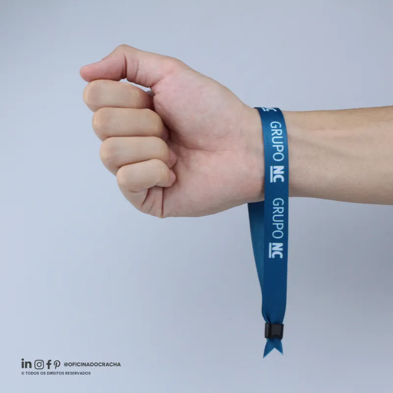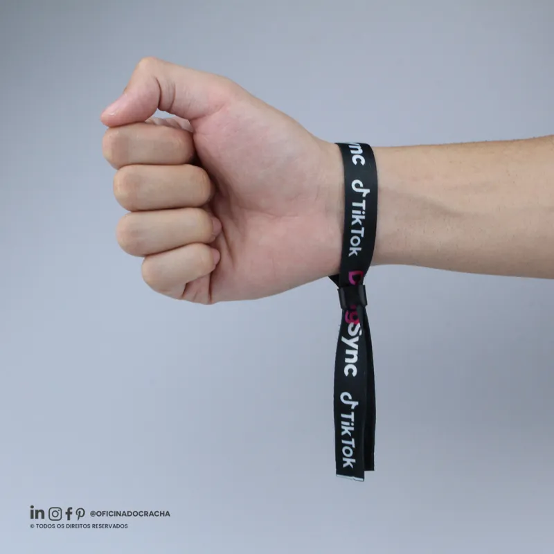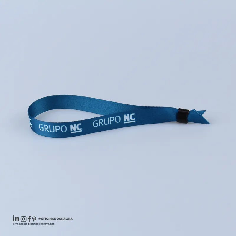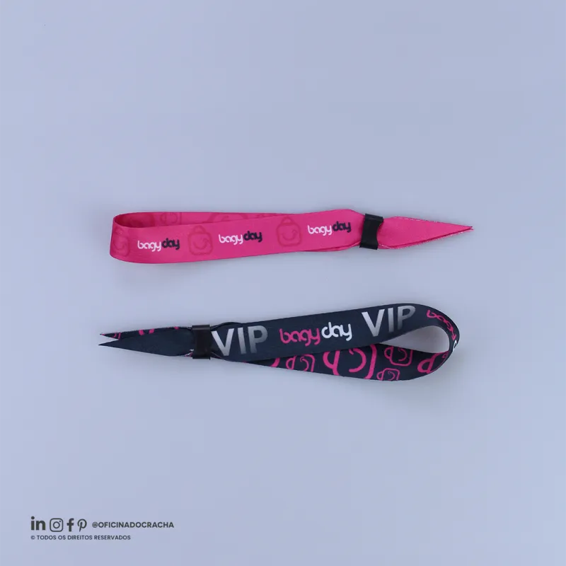 Fabricadas em fita 100% poliéster acetina, resistentes e confortáveis. Com lacre de segurança, garantindo mais segurança para seu evento. Ideais para controle de acesso em hotéis, parques, eventos e áreas VIP. Opções lisas ou personalizadas com impressão digital.